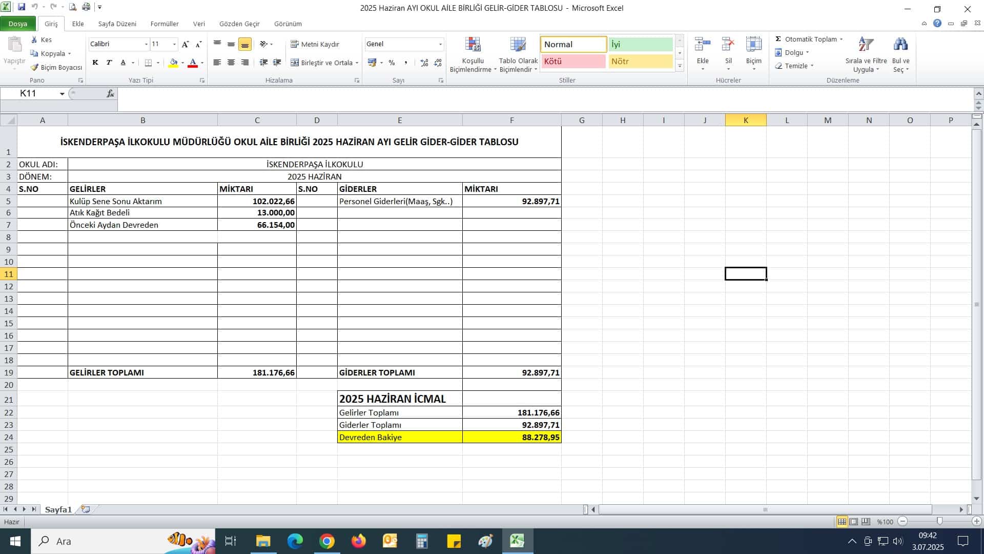 Okul Aile Birliği 2025 Haziran Ayı İcmal